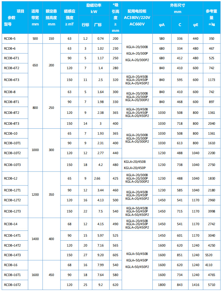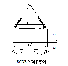 四、RCDB系列懸掛盤式自冷電磁除鐵器主要技術參數(shù)、外形尺寸                      執(zhí)行標準:JB/T7689