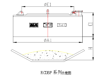 四、RCDBF系列粉塵防爆型盤式電磁除鐵器主要技術(shù)參數(shù)、外形尺寸