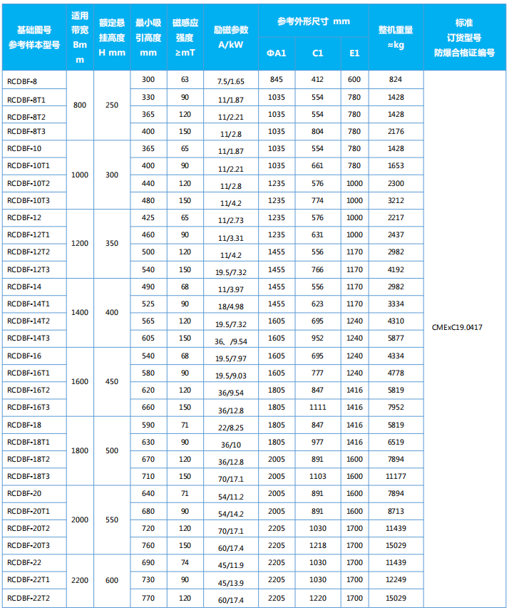 R—其它磁選設(shè)備 C—除鐵器  D—電磁式  B—盤式(斷電卸鐵)F—粉塵防爆