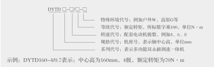一體機型號由系列代號、規(guī)格代號、轉速代號、等級代號和環(huán)境代號五部分組成。
